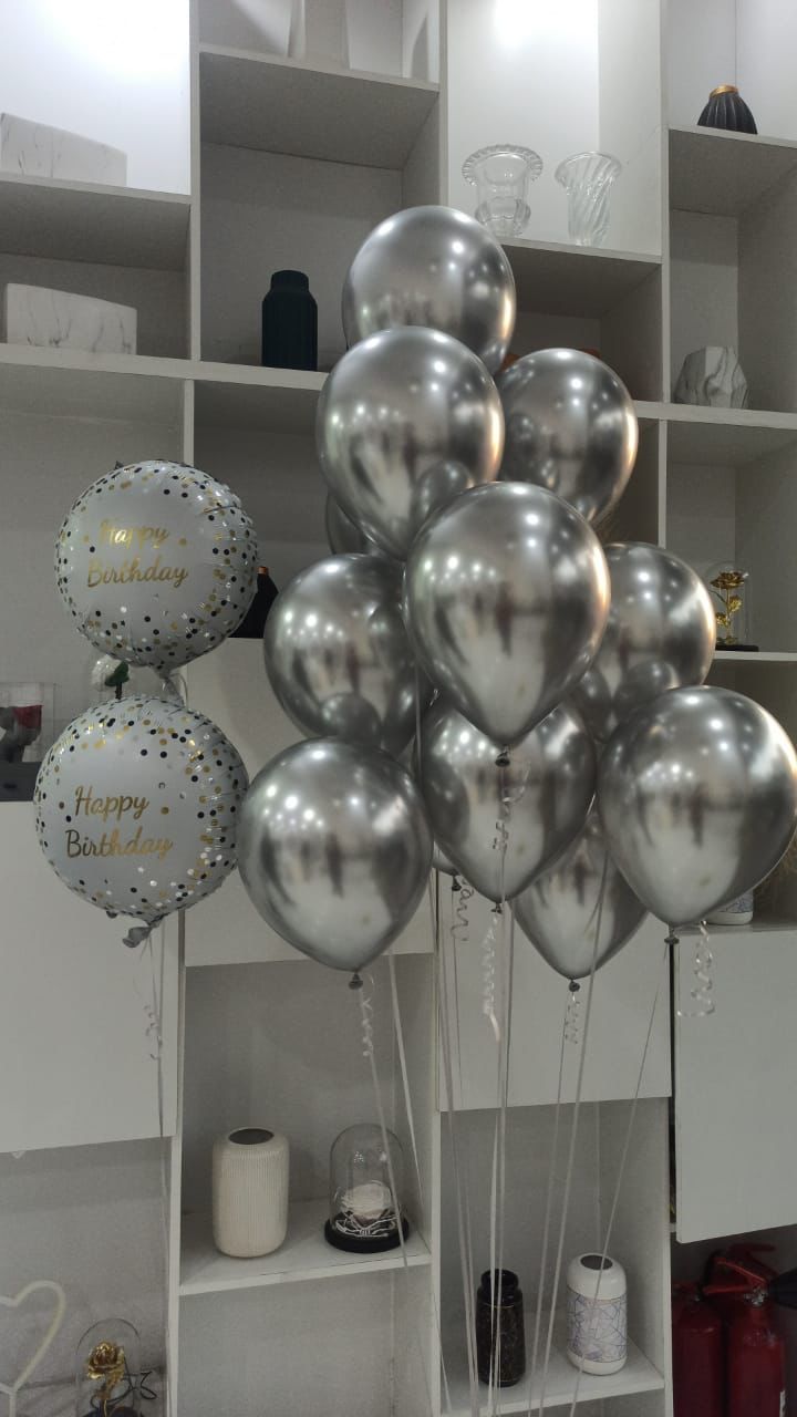 12 Normal Silver Balloons ,2 Happy Birthday Foil Balloons With Helium .