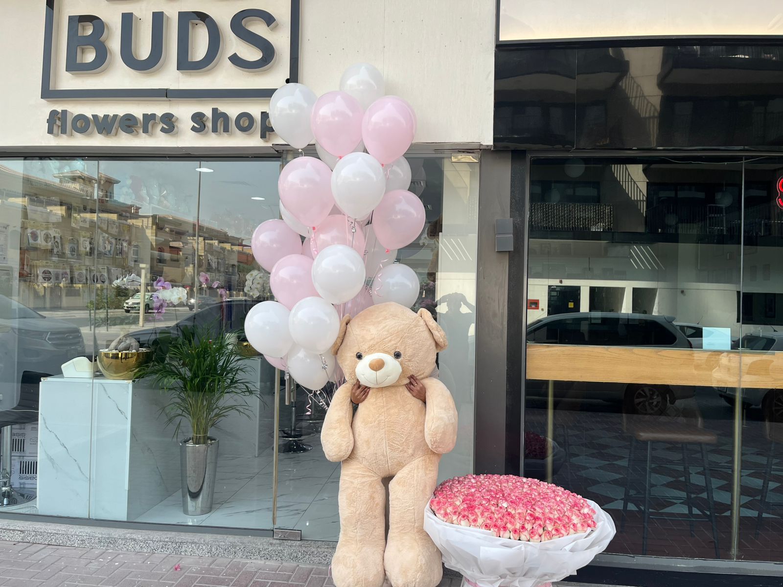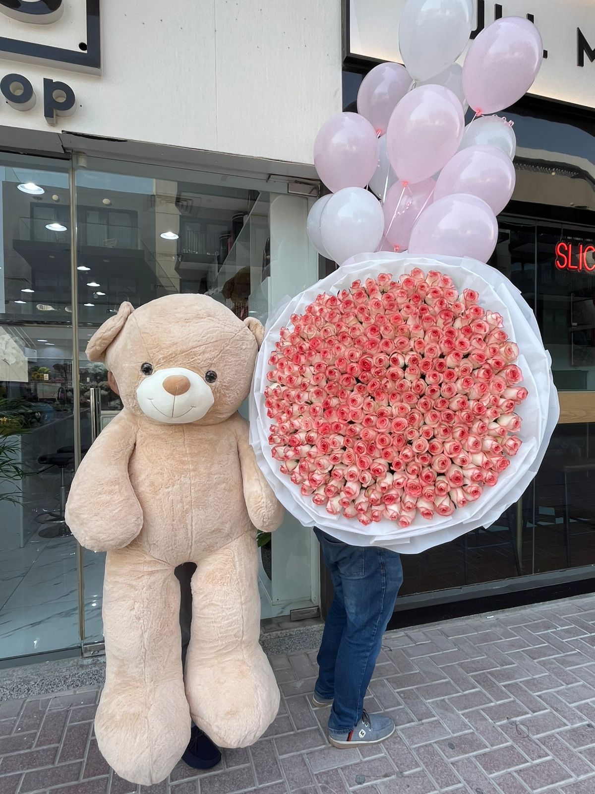 Beautiful Bouquet Is 201 Roses ,1 Big Soft Bear With 30 Light Pink &White Balloons.