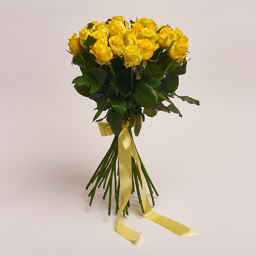 Bunch Of 50 Yellow Roses stylishly tied with ribbon.