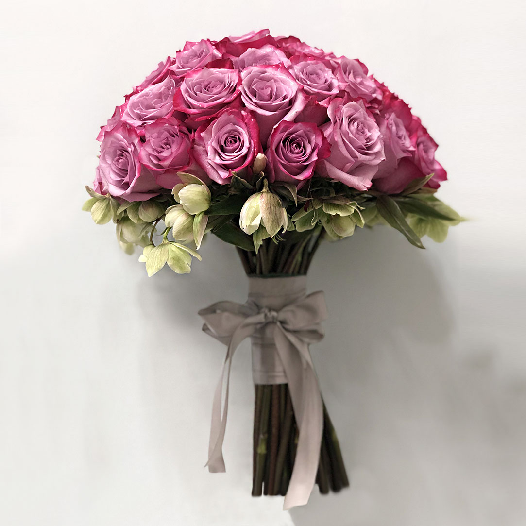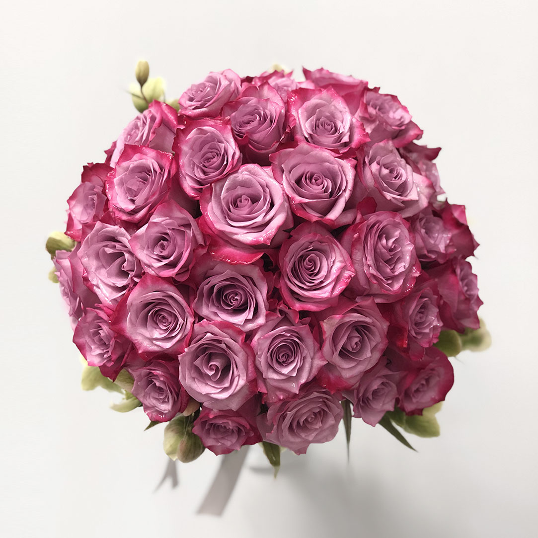 This bouquet contains is 40 to 50 roses with fillers ribbon tie.