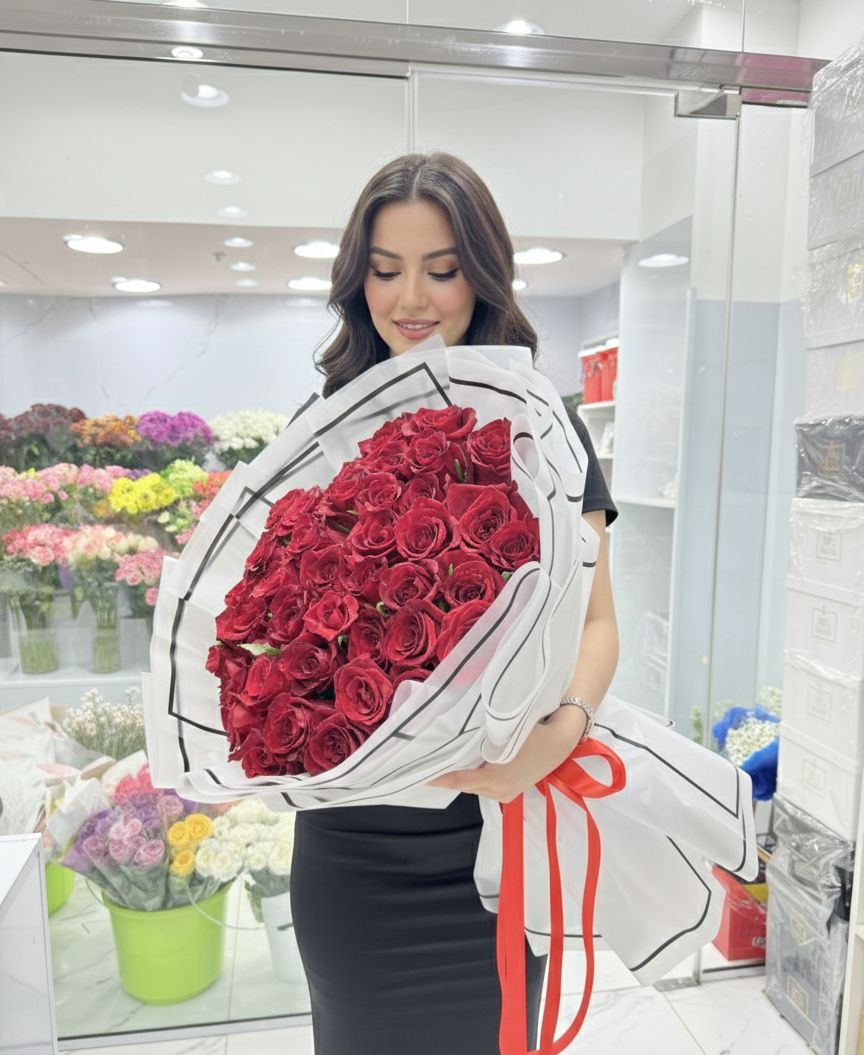 A breathtaking bouquet of lush red roses, wrapped in elegant white paper and finished with a bold red ribbon. Ruby Romance Grande is a timeless expression of deep love, passion, and admiration—perfect for Valentine’s Day, anniversaries, or when words simply aren’t enough. A grand gesture for someone truly special .