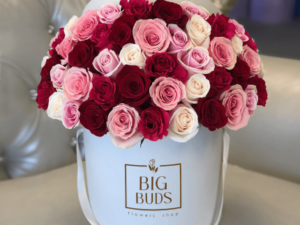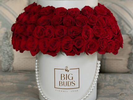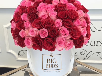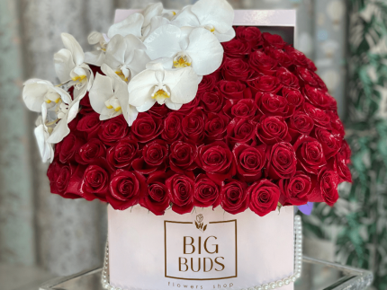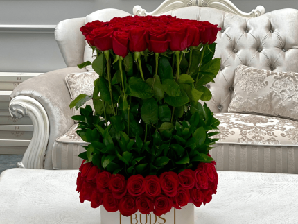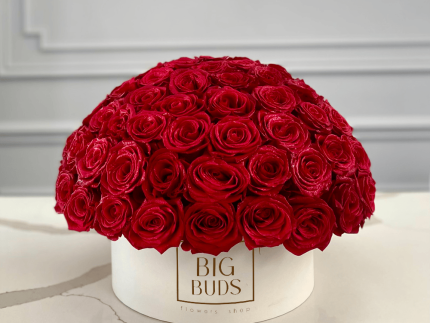 100 Standing Big Buds Red Roses In Low Box