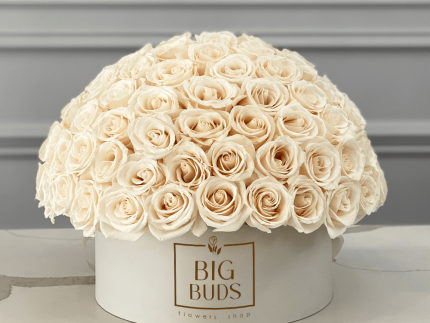 100 BBF Signature White Roses in Low Box